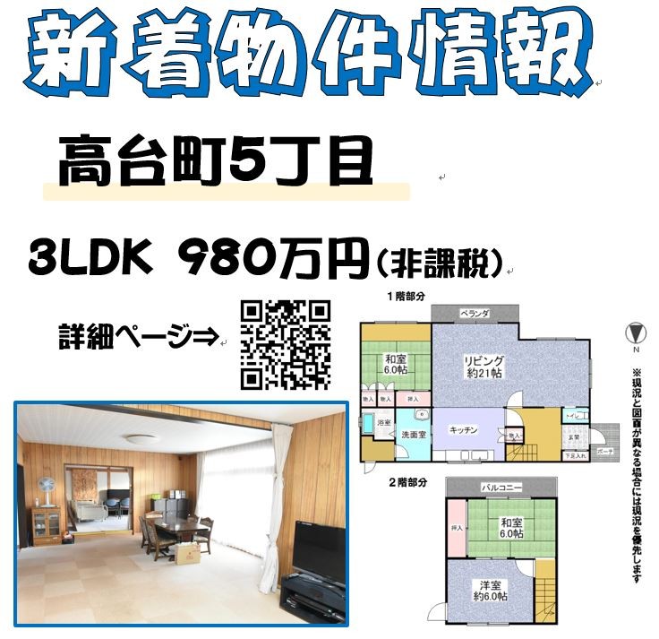 このたび『北広島市高台町5丁目』 3LDK 980万円の物件をお預かりしました!