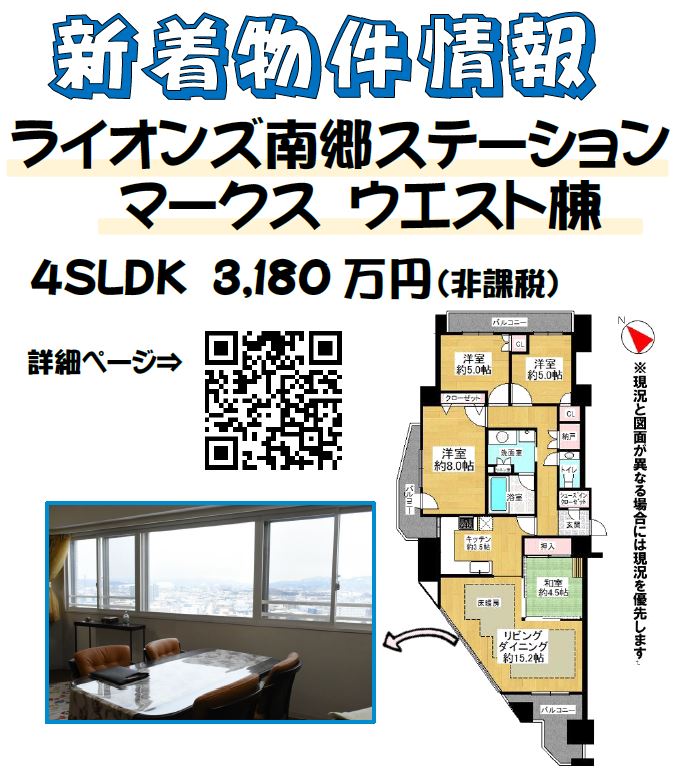 このたび『ライオンズ南郷ステーションマークス ウエスト棟』12階 4SLDK 3180万円の物件をお預かりしました! 日当たり・眺望良好! 小中学校やスーパー、病院など何でも揃う便利な立地です! 是非お気軽にお問合せ下さい♪